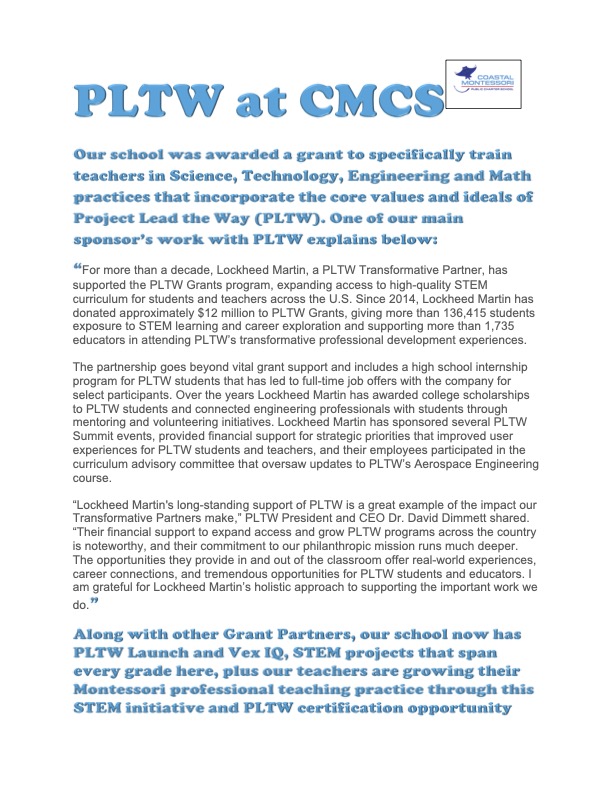Coastal Montessori Charter School has made the Montessori method of teaching a free public option in Georgetown County in order to give more children new opportunities for achieving academic and lifelong success.